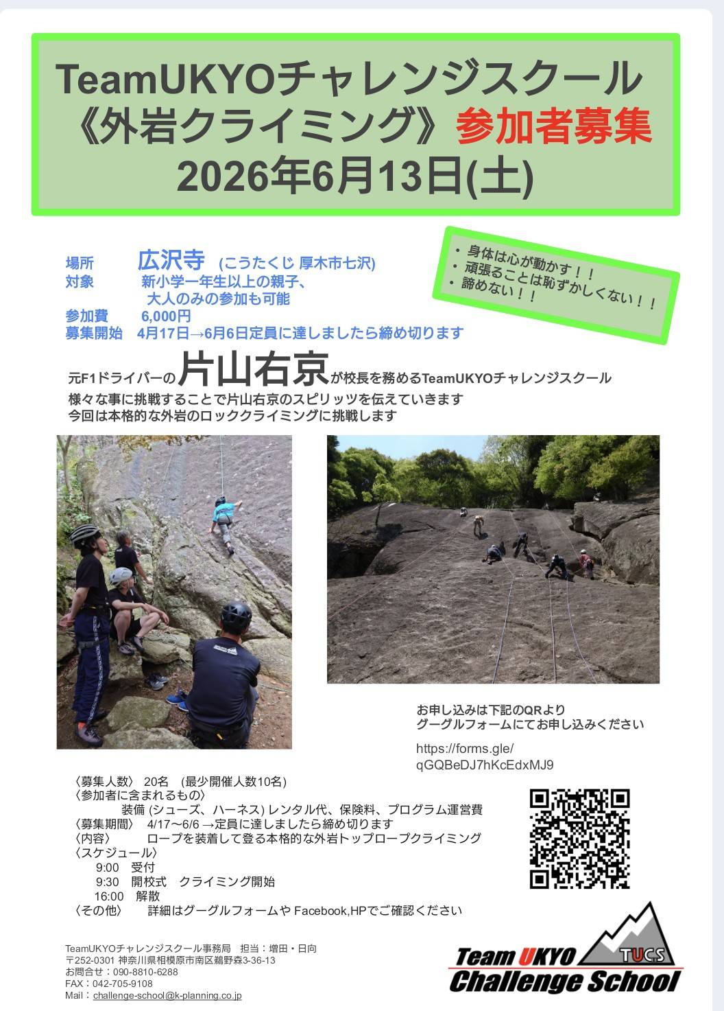 6月開催のチャレンジスクールでは、本格的な外岩クライミングに挑戦します!